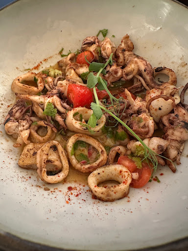 We have 2 appetizers to start. The grilled squid taste good. The deep fried fish ball has crispy skin with no bone cod fish inside. Not too oily. Good with wine.