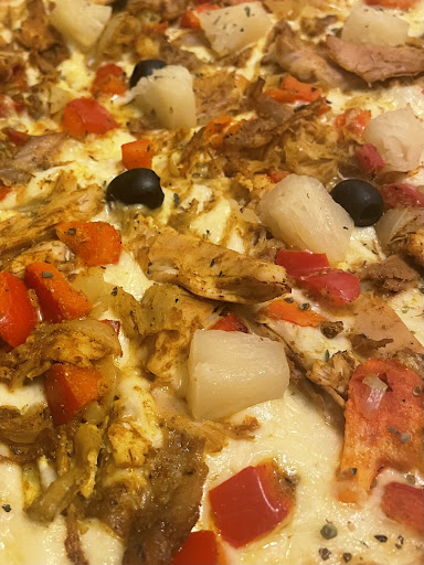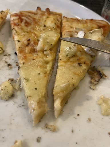 La nonchalance avec laquelle ont à posé 3 olives sur une des 4 part de la pizza, me fait m'interroger sur la personne qui cuisine tout ça .