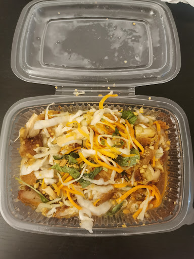 Read moreGrosse déception, moi qui voulais manger un lap kaï (plat traditionnel laotien de poulet, coriandre, menthe, citron, piment...), je me retrouve avec une salade de carotte, chou et poulet frits. Ce qui n'a rien à voir avec un lap kaï ! Je suis lao et je sais de quoi je parle...! Le pire dans tout ça, c'est que lorsque j'appelle le restaurant pour leur dire que je n'ai pas reçu ce que j'avais commandé, il me répond que c'est comme ça qu'ils le font et ce depuis 20 ans et que les français mangent comme ça ! Mais LOL! C'est vraiment se payer la tête des gens ! Je ne vais pas appeler une quiche une pizza ! Appelez ça autrement ou mettez le descriptif de vos plats à ce moment là. Il y a aussi des gens qui savent ce que c' est un lap kaï et qui peuvent être déçus de recevoir autre chose et surtout, avoir ce genre de réponse ! Je rêve... J'en peux plus de ces restaurateurs asiatiques qui cuisinent des plats asiatiques "à la française". Y'a plus de resto où on peut y manger des vrais plats avec les vrais goûts ? Ci-dessous la photo à gauche de leur "lap kaï" que j'ai reçu (inutile de préciser que le goût n'y est pas non plus) et à droite, un vrai lap kaï. C'est quand même pas du tout la même chose right ?? Scandalisé par la réponse du resto et le manque de...