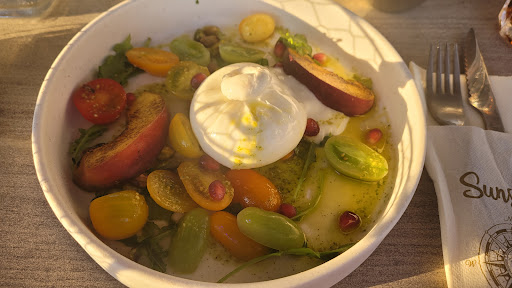 TrĂšs bel accueil et accompagnĂ© Ă notre table. Distribution des cartes 20 minutes d'attente pour venir prendre notre commande ... Nous avons le temps d'observer le balai des serveurs... Entre les serveuses qui se gratte le nez et en permanence les cheveux ça donne envie de recevoir nos assiettes . Mangeant lĂ©ger le soir je me dis qu'une salade de tomate a la burata sera suffisant (je compenserai avec les dessert đ) Une nouvelle serveuse pour prendre la commande... beaucoup moins aimable ... pas un sourire, fait la tĂȘte quand nous disont ne vouloir qu'un coca pour "l apero" ( pour une seule personne bien sĂ»r)que l'eau Ă table nous suffira . S'assoit sur la table voisine pour prendre notre commande... me rĂ©pond d'un ton agressif " ma salade de tomate c'est pas copieux ça ne vous suffira pas!!" Je lui explique que j'ai un petit appĂ©tit que ça me suffira avec un dessert. Affirmant que tous les produits Ă©taient frais locaux ect... on est ravis... Les assiettes arrivent avec encore une autre tĂȘte... la salade de tomate est jolies mais on voit clairement que ce sont des tomates cerises de toutes les couleurs industrielles malheureusement... (voir photos) 2 seuls petits morceaux de pain dans une grande paniĂšre alors que nous avons commandĂ© 2 salades! Et le pain est pas frais...mais mou... DĂ©barrassĂ©s au bout d'un moment... choix du dessert s'impose... Nous demandons des explications sur les desserts... on nous rĂ©pond que c'est bon et qu'on ne sent pas les Ă©pices.. Nous partons sur une coupe de 3 boules de glaces ... servi presque fondu... mais mangeable Pour la note c'est pareil... apportĂ© avec sourire et gentillesse par le jeune homme qui nous accompagnĂ© Ă table et l'encaissement par la jeune fille qui s'assoit encore sur la table voisine pour passer notre CB ... Je trouve ça trĂšs peu hygiĂ©nique et peu poli... Dans un restaurant une faudra Ă©viter que les serveuses est leurs mĂšches qui tombent devant la tĂȘte pour Ă©viter des les gratter toutes la journĂ©e... mĂȘme si c'est la mode.. et je ne sais pas pourquoi elle se gratte toutes constamment le nez c'est rĂ©pugnant ! Bref *Ambiance au premier abord bien puis dĂ©cevante *Repas beau mais la qualitĂ© est moindre. *TrĂšs belle prĂ©sentation des plats. *Tables trop serrĂ©es pour faire du chiffre *Service...