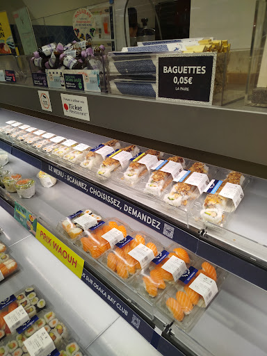 Ce matin, 12h04, j'achète des sushis pour passer une excellente soirée avec mon chéri. Le temps d'arriver à la maison, d'ouvrir mon sac réfrigéré, une odeur que vous ne pouvez bien évidemment pas sentir malheureusement d'ailleurs nauséabonde se dégage de mon sac.... À l'instant, le responsable du rayon refuse de reprendre sa marchandise,, de me l'échanger ou de me la rembourser Comme je suis d'humeur très généreuse, je lui laisse les sushis et je lui dis et ben mangez puisqu'ils sont bons!. À mon grand étonnement bien évidemment finalement pas très étonné il ne veut pas les manger... Quand on vend des sushis avec du poisson frais on évite justement de mettre du poisson avarié à l'intérieur je ne recommande pas du tout.. A presque 15€ la boîte.... Ça sera remboursé...