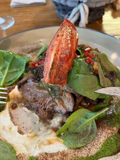 Read moreUn restaurant avec une très bonne nourriture. Dès votre arrivée ils rapportent un amuse-bouche, c'est agréable. J'ai pris le menu plat + dessert. En plat j'ai pris une brochette de faux-filet qui était très bonne ! En dessert j'ai pris deux mini desserts avec du thé, rien de spécial. Il n'y avait que deux types de vin rouge en verre, mais il était pas mal, même si la serveuse n'a pas pu expliquer les caractéristiques. L'atmosphère du restaurant ne correspond pas vraiment à la nourriture et aux prix, ça fait un peu la cantine mais les plats sont beaux comme au restaurant gastronomique, les prix aussi sont plus élevés que la moyenne. Je trouve qu'ils doivent modifier le déco pour le faire plus...