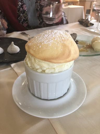 Read moreTrès déçus ; pas par les entrées : Pour moi tartare de bœuf aux huitres coupé au couteau. Très bon Pour mon épouse Feuilleté de ris de veau. Très bon également ça se gâte avec les plats : Pour moi cœur de ris de veau. Très sec sans aucun goût. Pour mon épouse. Pigeon rôti entier à la minute. Très sec également Quant aux desserts, acceptable pour mon épouse (brioche perdue glace vanille) et pour moi 3 boules de glace sans même de crème chantilly ni une petite feuille de menthe pour agrémenter tout cela dans un menu à 55 € c'est tout simplement scandaleux. Conséquence nous n'y retournerons plus (nous y étions déjà allés une fois et sans être emballés nous avions décidé d'y retourner pour...