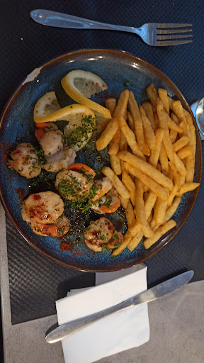 Read moreMon mari et moi sommes allés manger dans ce restaurant avec nos deux petits chiens. J'avais réservé une table pour 13h30. J'avais signalé qu'on a 2 chiens. A peine arrivés, je demande si je peux avoir un peu d'eau pour les chiens. On m'indique une gamelle à l'extérieur. Ok, je me remets en route avec les chiens et je vais dehors pour qu'ils puissent se désaltérer. Ensuite, on patiente longtemps pour pouvoir commander. J'appelle une jeune femme pour lui indiquer que des gens ont déjà été servis avant nous, alors qu'ils sont arrivés après nous. On me répond que le rez-de-chée et notre espace sont servis séparément. On passe la commande. On reçoit nos apéritifs ainsi qu'une petite bouchée à déguster. Je termine à peine ma petite bouchée que nos plats nous sont déjà servis. Nos apéritifs ne sont même pas encore bus 😓. Mes moules sont les plus petites que je n'ai jamais dégustées. Peut-être est-ce ainsi à Berck ? Et mon mari reçoit sa pièce de boucher coupée en deux 🙄. Les frites sont bonnes. Le couvercle de ma casserole est rempli de coquilles. Personne ne vient le vider. Je suis obligée de le vider dans l'assiette vide de mon mari. Je dois rappeler nos 2 verres de vins ainsi que la mayonnaise oubliés. Je cherche à me nettoyer les mains avec des petites lingettes citronnées. Aucune trace de lingettes. J'ai vraiment été déçue du service 😔. Une dame d'une bijouterie de Berck m'avait conseillé ce restaurant récemment ouvert mais j'en suis revenue fort déçue ainsi que mon mari. Je n'y retournerai plus. Quelle différence avec le super accueil de la dame de...