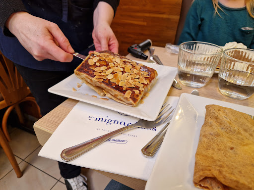 Nostalgie aidant ou non, les crêpes et galettes de sarrasin des Mignardises sont tout bonnement succulentes. Rien qui soit particulièrement extravaguant, mais dans chaque crêpe ou galette réside la garantie d'un excellent repas. Les crêpes dessert sont délicieuses également, à noter la fameuse sauce au chocolat maison et depuis plusieurs années déjà une pâte à tartiner aux noisettes du Piémont qui est un régal absolu pour les amateurs, à 1000 lieues du très mauvais et trop répandu Nutella.