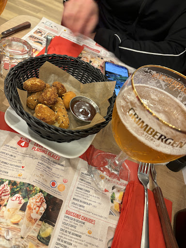 Read moreArrivée à 12h aussitôt prise en charge apéro petite salade d accueil et pop corne et commande des plats Jusque-là tout va bien Mais gros gros bémol c'est que les plats arrivent aussitôt alors qu on a même pas encore touché à la petite salade ni aux pop-corn et pas bu apéro J informe le serveur qui me dit pas de soucis je remets au chaud.... Sauf que les plats étaient un chilicone et un hot dog avec frites Résultats quand on a récupéré les plats après l apéro bu et mangé petite salade d accueil Et bien ils étaient plus que sec je parle même pas du pain du hot dog qui etait hyper dur et sec limite tronçonneuse pour le couper et pas mangeable Quand aux haricots du chilicone secs sur le dessus et frites également Bref que des déceptions Par contre accueil à la rentrée du restaurant sympa et serveur aussi Pour conclure Service beaucoup trop rapide et pas le temps de manger les petites attentions servies au début sinon vous mangé plus que très sec!!! Je ne recommande pas du tout 52.50 eur pour des plats très secs et réchauffés merci beaucoup mais je passerai mon...