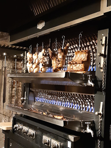 De nombreux plats de viandes rôties à la broche mais pas seulement (1 poisson, 1 plat végé) avec entrée, plat et dessert à 35€ (entrée/plat ou plat /dessert 26,50€ ou 1 plat 18€ avec quelques suppléments selon les plats). Autour de 6 propositions par catégorie. Le samedi, Cochon de lait en sus (+7,50€). Réservation souhaitable (10-12 parts de cochon).