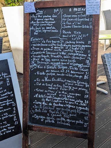 Read moreFriendly welcome on entry and given options on where to sit. The menus are on a blackboard (French only) but there are several English speakers in the staff who can talk you through what there is. We sat out the back with a view of the airport, and we ordered from different menus without a problem. The bill was pricey for France, but the food was lovely so that's not a problem. My Dover sole...