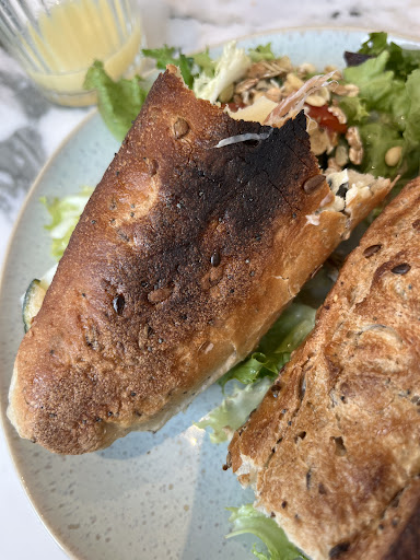 La pire expérience de déjeuner jusqu'à présent. Cela semblait être un endroit agréable pour déjeuner, ce que nous avons fait le 23 juillet 2024. Nous sommes entrés dans l'établissement et n'avons pas eu droit à un accueil ou à un bonjour, il nous a fallu un certain temps pour obtenir le menu, jusqu'à ce que nous le demandions nous-mêmes, il n'y avait pas beaucoup de monde et nous ne comprenions pas pourquoi cela prenait autant de temps. Nous avons demandé à nous asseoir à l'intérieur car il commençait à faire trop froid dehors, ce qui était clairement contre la volonté de la serveuse, c'était un problème, alors qu'à l'intérieur il y avait plus de 3 tables libres pour 2 personnes. Après avoir fait comprendre à la serveuse qu'elle n'aimait pas cela, on nous a quand même permis de nous asseoir à l'intérieur. Nous avons ensuite dû attendre 50 minutes pour recevoir les sandwichs que nous avions commandés.... Le couple assis à côté de nous avait également commencé à demander si le repas arrivait et à dire que cela prenait beaucoup de temps. Au bout de 50 minutes, nos sandwichs étaient complètement brûlés. Nous avons longtemps hésité à en parler, car ils n'étaient tout simplement pas comestibles, mais nous n'avions pas le temps d'attendre encore 50 minutes pour manger. Lorsque nous sommes arrivés à la caisse pour payer, il y avait une facture entière d'une autre table... pas professionnel ! Le personnel est arrogant et sans raison, je ne recommande pas de déjeuner ici, en espérant que leurs pâtisseries...