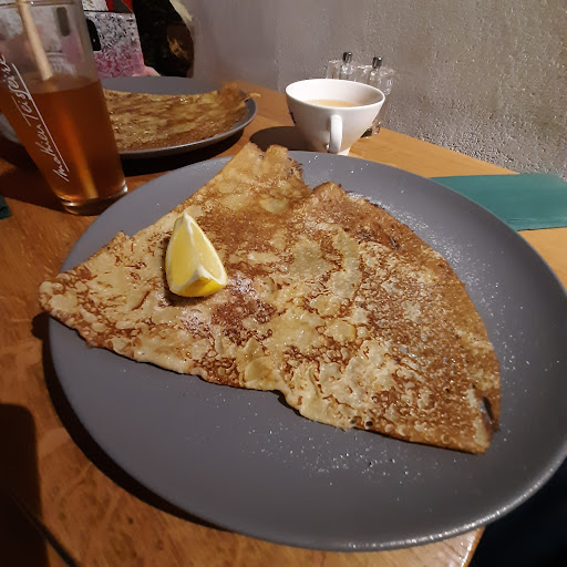 Last year they allowed dogs, this year they don’t, never mind, you have to sit on the terrace. What is really important are the crepes. The waitress announced that they didn’t have any mushrooms, they were out of stock. It turned out they were also out of pesto, it got substituted by something else, and also out of orange confit, had to accept raspberry jam, and the cider jelly was so meagre, indeed suspiciously unidentifiable in the crepe that I suspect they were actually out of that too. Long, long wait for pudding crepes. Sometimes we take three crepe courses if feeling greedy, no chance of there here, there aren’t enough hours in the day. We waited so long that my elderly mother in law started feeling the chill, the owner was kind enough to find a coat to keep her warm, which earns an extra star or two for this review. However, if the service had been up to scratch, we wouldn’t have been waiting so long and wouldn’t have got cold in the first place. So sad this place has gone down hill. There are many better...