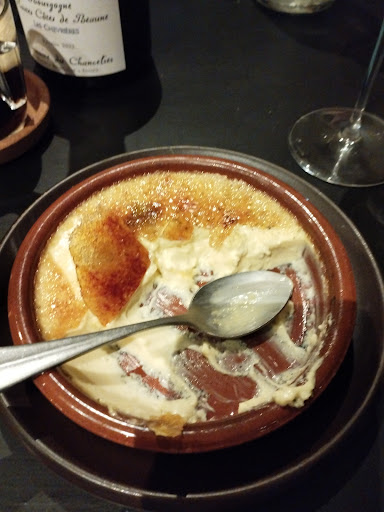 Guillaume, qui a bien bourlingué entre le Japon, la France et le Portugal, revient dans sa région natale pour nous concocter de fort belles assiettes au fil des produits de saison du pays. Il connaît la musique. Témoin cette belle poitrine de veau au jus accompagnée de haricots beurre et de pommes grenaille fort savoureuse. Un bon jus de viande atteste toujours du talent d’un chef ! Épreuve réussie !