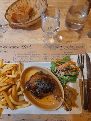 Read moreWe had a formula de midi, my wife having an entree with goats cheese and I had a dessert creme brulee with rum, both of which we shared. The main course we had was fish (dorado) which came with pomme frites and peas. All was very well cooked and presented and the service was pleasant and relaxed. Good value for about 18.50 euros without drinks. I had a local beer and my wife had cider which...