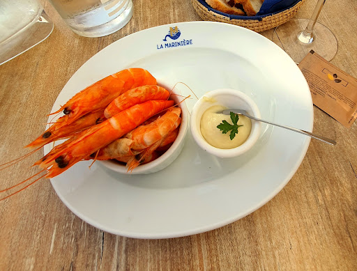 Read moreNous avons été déçu : 5 entrées et 5 plats dont de l’araignée sur la carte. Au moment de la commande, plus d’araignée, on avait oublié de nous le dire en apportant la carte ! On a aussi oublié de nous dire qu'il y a avait des moules qui n'étaient pas sur la carte qui nous a été donné. Je change donc mon plat par des moules à la crème (en les voyant servies à un autre client). On m'apporte des moules marinières ! Le serveur me propose de les changer, mais le service étant déjà assez long entre l’entrée et le plat, je refuse. Puis le serveur me rapporte un petit bol avec la crème en me disant "on ne vous comptera pas le supplément crème" A proximité de notre table, un groupe de 4 personnes a fumé entre chaque plat (nous étions en terrasse mais le vent ramenait la fumée vers nous). Les serveurs sont passés X fois à coté, rien ne leur a été dit pour qu'ils arrêtent. Nous l'avons signalé à la fin de notre repas, le serveur nous a répondu qu'il n'avait rien vu et rien senti ! A cela s'ajoute les frites servies tièdes molles et collées entre elles et pas maison. Les crevettes servies en entrée étaient de piètre qualité, nous en avons acheté de bien meilleures au Super U du village. Bref 2 entrées, 2 plats et 50 cl de vin pour plus de 55 euros. PS : la propriétaire m'a offert les moules marinières suite à l'erreur de commande. Sinon, nous aurions payé plus de 75 euros. Chez nous, à Lyon, on appelle ça un piège...