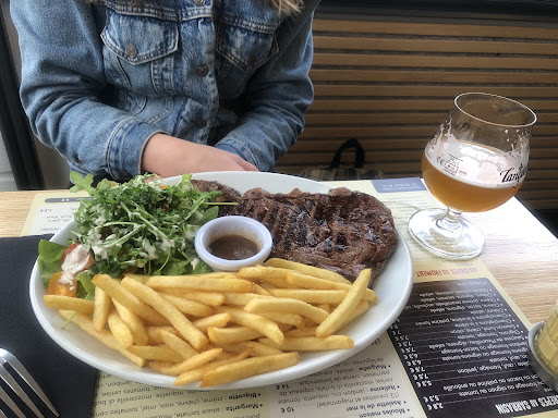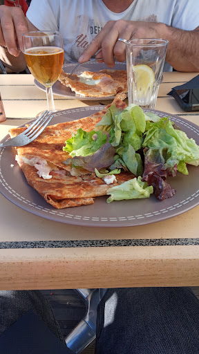 Read moreMoi qui suis du coin, j'y suis allée pour la première fois manger la semaine dernière, avec mon fils de 7 ans. Arrivés à 20h, nous avons demandé à réserver, et c'était bon pour 21h. En attendant, nous sommes allés jouer sur la plage du port, située à 2 minutes de marche. A 21h, nous avons été accueillis "normalement" (pas de grands sourires, mais ok). Le restaurant était B.O.N.D.E ! La carte est fournie, nous avons un peu hésité mais avons opté pour des burgers : Un cheese pour mon fils et un végétarien pour moi. La serveuse qui s'occupait de nous était adorable, souriante et dévouée, malgré le monde nous n'avons pas senti le rush, le personnel ne paraissait pas du tout stressé. Je dirais que nous avons attendu environ 20 minutes pour être servis, ce qui me semble correct. Nous nous sommes régalés ! 10€ le burger / frites / salade, c'est imbattable ! Mon fils a pris 2 boules de glace en dessert. La note était de 30€, c'est plus que raisonnable pour un repas tel que celui-ci.