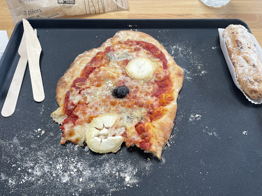 Nous sommes venus manger ce jour à l’heure de midi , un peu déçu de la présentation ! Quand on propose aux clients un coin « Snacking» , on fait tout pour que cela soit bien fait et proprement . Car comme vous voyez sur la photo , la pizza et poser à même le plateau ( sur une assiette aurait été bien plus agréable ) sans couverts et sans serviettes, rien ! On a dû les demander pour au final avoir des couverts en bois qui couper rien , on a mangé avec les mains , pleins de farine partout et Débrouille-toi avec ta pizza !!!! C’était une première pour nous et peut-être une dernière si aucune amélioration de se côté. Par contre pizza très bonne , dessert également et accueil agréable. A...
