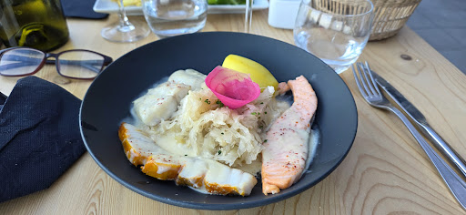 After a month touring Galicia, it was pure chance we found the campsite in St Pol, & even better this wonderful restaurant for a last night treat in France. What a treat it was too with stunning views, a young & vibrant team & faultless food. Having used up our money, we opted for the €29 formule menu & we’re both more than satisfied. Some inventive cocktails to begin (with a superb amuse-bouche), the freshest local oysters & a delicious duck terrine for starters & fish & ginger marinated pork for mains. They even acquiesced to my request for a dessert off the main menu - who could resist ending on a lime sorbet with a nip of vodka? Great attention to detail on every dish & wonderful taste combinations. The à la carte menu looked superb too & when we’re back next time with a bit more money, we’ll be delving into that! A...