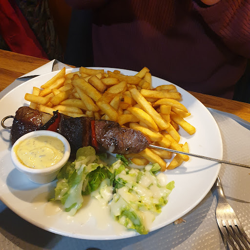 Après huits jours de voyage en France, finalement on nous a fait sentir vraiment à l'aise dans un restaurant. On était deux. Quand on est arrivé, on nous a mis tout de suite une carrafe d'eau fraîche, qu'on remettait dès que c'était finie sans qu'il y ait même pas besoin de le demander (dans plein de restaurants on nous a persuadé pour commander une bouteille, qu'aprés on paie comme si c'était de l'or). Puis, j'ai commandé une formule et ma copine juste un plat, car elle mange moins. On nous a pas mis de problème pour que je partage la suite avec elle et surtout on nous a pas regardé mal, tout au contraire, et elle a pû garder son assiette et goûter mes plats (cela paraît très simple, mais vous imaginez pas le nombre des restaurants où cela pose un problème). Les deux serveurs qui nous ont servi étaient vraiment très professionels. Ils allaient vite et étaient très serviable (ils m'ont même aîdé à traduire les noms des desserts à ma copine). Et il faut pas oublier la norriture. Les salades étaient très bonne et il y avaît la bonne quantité, la brochète de boeuf était super bien faîte, se mangeait très facilement et venaît accompagnée d'une sauce qui avaît un très bon goût. En plus, les desserts étaient faît maison et il y avaît de la varieté (on a beacoup aimé la tarte au citron). Tout cela a fait sans doute qu'on commande plus que d'habitude. Avec ça, le pain était très frais, même si c'était le soir (dans plein de restaurant le pain est déjà pas trop frais le soir) et le café était aussi bon. Pour finir, l'addition était très clair et simple, rien d'étrange ajouté au dessous de prix de plats, qui te font sentir arnaqué à la fin du repas (dans plein de restaurant on nous faisaît payer le pain, le service, etc.). Donc, je me suis senti dans le besoin d'écrire ce long commentaire pour partager ce que j'ai eu du mal à trouver pendant mon voyage et que j'ai finalment trouvé dans ce restaurant. Des chosses simples qui font que le repas soit parfaît. Je ne peux que le...