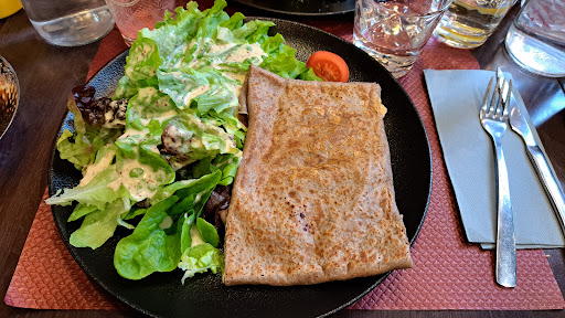 Read moreTerrasse ombragée et sympathique. Assiettes plutôt copieuses et bons produits. Nous avons pris la salade avec foie gras, saumon fumé et magrets, et une assiette de frites. Très bon. Le petit a pris une galette complète, qui était malheureusement un peu sèche mais en revanche bien garnie en fromage.