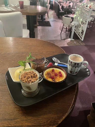 Les desserts ont rélevé le niveau: crÚme brûlée caramel et nougatine pas mal, bien que servie complÚtement froide. Le fondant au chocolat a été trÚs apprécié. Ananas bon, bien sucré ; regret de ne pas avoir eu connaissance de l'ananas flambé en amont.