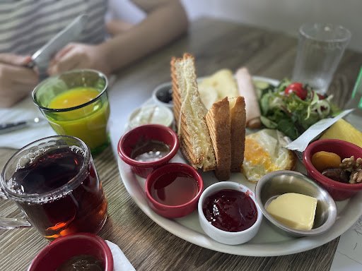 La premiĂšre fois ce fut un sans faute, service, sauce Ă salade au yaourt dispo, juste le jus d'orange pour moi ayant l'habitude de boire du jus d'orange pressĂ© sa ne l'Ă©tais pas ! Et cette fois bof déçu le service un sourire en plus ce serais sympa,la sauce au yaourt qu'il n'y a plus Ă 9h30 du matin alors que sa fais qu'une heure trente d'ouverture, honnĂȘtement manger une salade sans sauce c'est pas pour moi, je ne suis pas un lapin, sa devrais ĂȘtre proposer au moment de la prise des menus qu'on est pas Ă demander, et pour moi ce qui m'a vraiment choquĂ©, dĂ©goutĂ©, agacĂ© c'est le verre de jus d'orange pressĂ© qui a Ă©tĂ© coupĂ© avec de l'eau,... C'est mal et malhonnĂȘte ce genre de procĂ©der... Pour faire des Ă©conomies et plus de verres !!! Bref je ne dirais pas que je ne recommande pas, mais voilĂ j'espĂšre que les propriĂ©taires me lirons et se remettrons en questions, parce qu'il faut toujours ĂȘtre irrĂ©prochable Ă la hauteur honnĂȘte dans le monde de la restauration ou c'est la clĂ© sous la porte au bout d'un moment, parce que les gens ne sont pas dupe, et le bouche Ă oreille va trĂšs vite !