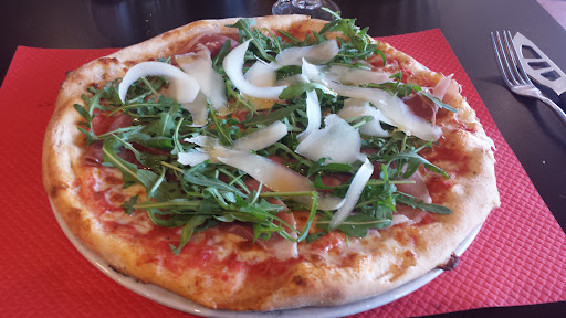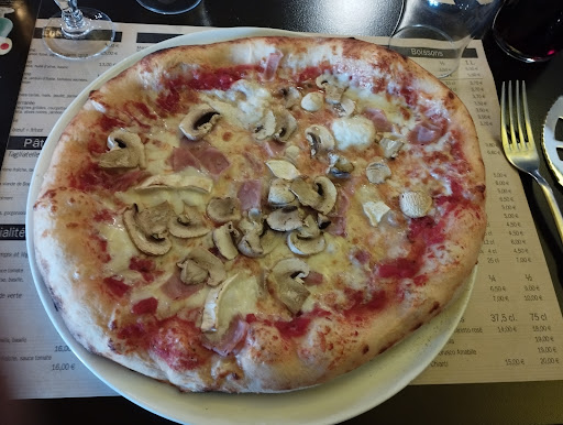 Nous avons mangé pour trois : une pizza au saumon dont les bords sont impossible à manger car ils sont cramés. Une calzone, cramé sur les bord, avec une mozzarella sans goût, un jambon industrielle digne du Lidl qui donne un mauvais goût à toute la pizza. Puis une escalope à la crème, dont la sauce est vraiment fade avec un arrière goût de champignons douteux, servi avec trois feuilles vertes fanées et quelques frites du congélateur.