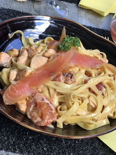 Un petit dîner à l'improviste, à l'heure pour cette fois, on se comprend 😉, et riche en émotion ce soir. Comme d'habitude à notre arrivée un accueil des plus génial, oui génial, j'ai eu droit à mon petit chapeau de père Noël, excellent 👍. Apéro consommé, 2 fois 😁, normal hein, quand on aime on ne compte pas. Les plats arrivent, pour ma part un tartare de thon frais (en suggestion) des plus délicieux, wouahh un vrai régal pour les papilles. La suite, foie de veau en sauce aux framboises (également en suggestion) accompagné de Spaetzles (ça c'est bien de chez-nous, miam) . Alors là, mais là, le plat c'est une explosion dans la bouche, une tuerie vraiment, je me suis simplement délecté de ce plat digne des plus grands, enfin j'en sait rien, je ne vais pas dans ces établissements étoilés, mais ce que je sais c'est que la chef assure vraiment un max , mais la aussi je dois dire qu'elle en est une, une grande 😁. Le tout accompagné de son petit vin du Rhône, un Vacqueyras, Marquis de Fonseguille, un vrai plaisir en bouche avec ce plat (mon choix, à chacun ses goûts). Malheureusement le dessert aurait été de trop. Plus possible, plus de place pour un autre plaisir gustatif. Bonne soirée la Team Gourmandin, toute la Team, car chacun apporte sa pierre à l'édifice. Tout seul on va plus vite, mais à plusieurs on va plus loin, merci à tous pour cette belle soirée 🙏. A la...