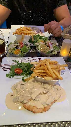Read moreJ’y suis aller avec mon compagnon le soir, une très bonne ambiance avec les lumières du plafond qui change de couleurs et la très bonne musique qui passe sans être assourdissante. Coté repas nous avons pris une entrée à partager à 2 qui se composait de 2 fish dips très bon le poisson était d’une très bonne qualité ainsi que 2 tempura, quelques calamars qui se battait entre eux, 2 oignons ring et 2 bâtonnets de chèvres. Le tout accompagné d’une sauce blanche style béarnaise. Cette entrée même si elle était bonne elle manquait de quantité, il y avait 1 ognon rings/pers 1 tempura/pers 1 bâtonnet de poisson/pers pareil pour le fromage. Il y avait juste 4 ou 5 petits calamar paner dans l’assiette en sachant que ça coute 12€ j’ai trouver ça très excessif même si la qualité est là. Pour le repas mon compagnon a pris un burger à 16€ Avec des frites en accompagnement et moi j’ai pris les penne au poulet sauce forestière à 15€. Alors plusieurs point négatifs donc un gros pour mon plat: les champignons en conserve ou on sent l’eau de la conserve couler en bouche quand on croque dedans. A ce prix là il faudrai des champignons frais et non en conserve. Et faire payer des pâtes 15€ alors qu’elles nont pas de saveurs particulière et quelles sont encore ferme, il a bien mieux ailleurs et pour un prix bien moins élever ( pâtes siracuse de house grill 8€ un goût magnifique à moindre prix). Mon compagnon lui a donc pris un burger et encore une fois pour le prix on s’attendait a voir au moins des frites fraîches ou une sauce maison mais au final il n’a eu qu’une pointe de vinaigre balsamique à quelle côté de ses frites avec des sauces comme au mcdo Quick etc.. Hormis ça même si les frites sont congelés elle reste de « bonne qualité » et la sauce du burger était pas mal. Nous n’avons pas prix de dessert car une fois de plus le prix est exorbitant tous les desserts sont à 7€ minimum et la serveuse qui vous donne la carte des desserts sans demander si on en souhaite un ou pas. Je conseillerai ce restaurant seulement pour boire un verre vu qu’il fais lounge mais pour ce qui est du repas passer votre chemin vous trouver mieux ailleurs et beaucoup moins cher. (escale burger sur mulhouse et chick’&’nat à Colmar pour le burger de mon mari avec une qualité qui...