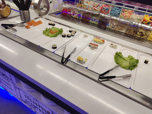 Nous sommes arrivés aux alentours de 19:45, nous étions 6. Arrivés au buffet, il n’y avait déjà plus rien. Plus de la moitié étaient vides ou alors imbibés de graisse ou réchauffé 15x vu l’aspect de certains plats... Pourtant nous aimons manger au restaurant, ou au volonté comme celui de Kingersheim qui non seulement est ravitaillé tout le long du service mais avec un personnel agréable contrairement au votre. La serveuse qui passe devant notre table, pleine d’assiettes donc nous avons empilé les assiettes afin d’avoir de la place à table et madame repasse une fois que la moitié du travail est fait.