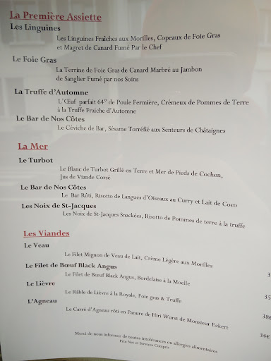 Finally good food in Alsace! Service was friendly (don’t except any language but French which is a shame but the waitress tried her best, fair play to her), the restaurant design is beautiful, plates, cups etc tasteful except the funny little cutleries and the steak knife that needs serious sharpening. Also the glass of red wine went into a small white wine glass. These are just little things though - food was excellent! We shared the foie gras that came with kakao, a surprisingly tasty pairing. Steak perfect, duck breast very good. Mixed vegetables absolutely great, big variety of a bit of everything, bravo. Dessert just ok, you could give a miss. Coffee strong and hot, drinks not too strong, fine for refreshment. Overall we left full, happy and with some bread that the lovely waitress added to my piggy bag, hearing that I enjoyed it very much. Thank you and...