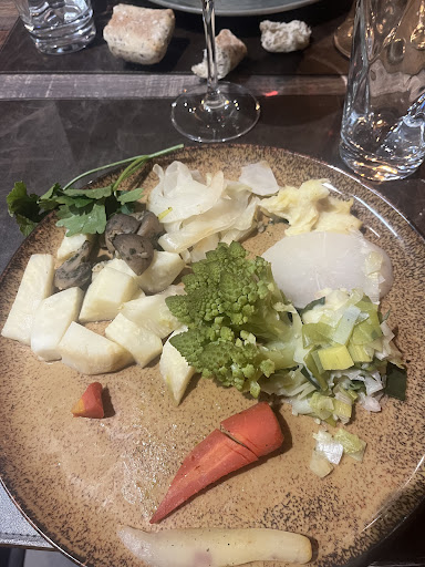 Arrive nos entrées (os à moelle + foie gras poêlé), à manger « à la minute ». Mais on attend encore pour commander le vin. J’interpelle l’équipe pour une action rapide. Ça dérange le patron qui s’énerve. Ce serait notre faute car nous avions demandé 2 minutes supplémentaires pour faire notre choix de menu (alors même que nous avons dû récupérer les cartes nous-mêmes) ! Quel lien entre les 2 prises de commandes ? Entre les 2 il y avait un laps de temps amplement suffisant. Mais d’après le patron c’est notre faute !