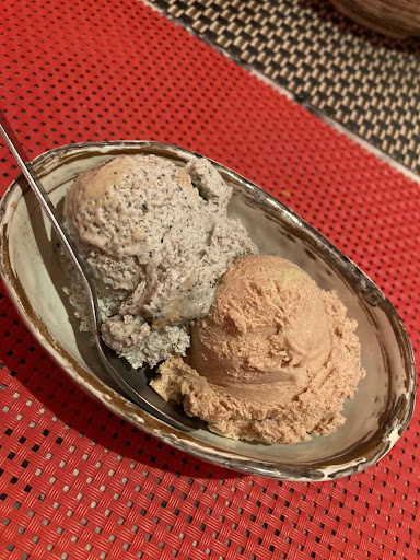 En dessert (ce que nous ne prenons que rarement en resto asiatique, vu les propositions et la qualité basse) nous avons, sans hésité pris les Daifuku (sesame et thé vert) même si les glaces aux parfums improbables (Wasabi par ex) nous ont titillé la curiosité ! C'était un régale ! Souples, goûtus et savoureux !
