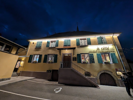 L’immense salle qui nous était dédiée, il fallait déjà la chercher soi-même, personne à la réception qui pouvait vous orienter. La disposition des chaises autour de la longue table était telle que celles-ci étaient accolées les unes aux autres: vous vous retrouviez serrés comme des harengs dans leur boîte ; Sans doute parce que le chauffage de la salle était défaillant, voire inexistant. Les radiateurs étaient froids (Température extérieure 4°). Ce n’est que vers 22h30 qu’un chauffage d’appoint a été mis en fonction, mais d’une inefficacité totale, vu sa petite taille. L’organisation du service était d’une médiocrité désolante. À chaque plat, c. à d. environ toutes les 30 minutes, on voyait les portes de la salle s’ouvrir, 2 ou 3 jeunes serveurs ou serveuses inexpérimentés s’introduire pour nous apporter un plat, tantôt froid, tantôt tiède, comme le potage, les accompagnements du plat principal (Spätzle, pain, assaisonnement, etc...) mal répartis et en quantité insuffisante (une cuillère à soupe de spätzle par convive!) Les boissons : même topo, service inexistant, puisque les portes étaient à nouveau closes, dans l’attente du prochain plat. Il fallait se déplacer pour chercher une bouteille déjà entamée à l’autre bout (15m) de la table. Personne pour vous demander si tout allait bien, s’il fallait ajouter quelque chose. Bref, un service de table catastrophique. C’est à se demander par ailleurs, s’il y a un chef du personnel dans cet établissement. Comment voulez-vous apprécier la qualité de ce qu’on vous propose à consommer dans de telles conditions. De plus, ce restaurant fait partie de l’Auberge Saint-Laurent, flanqué d’une étoile Michelin ! L’intervention de Philippe Etchebest, chef étoilé, est grandement nécessaire. Nous avions honte pour nos collègues suisses et autres, d’avoir eu à vivre une aventure aussi inhospitalière et rébarbative. Voici ce que vous trouvez en entête sur leur site Internet: « Winstub À Côté - Les portes de notre Winstub contemporaine vous sont grandes ouvertes ! Nous nous réjouissons de vous accueillir en toute décontraction "À côté", pour un instant convivial entre tradition et modernité. » Mince ! Nous avons dû nous tromper d’adresse ! L’entreprise victime d’une telle tromperie serait bien inspirée de dépenser son argent ailleurs. À fuir, ou plutôt accélérez en passant devant (mais avec modération à cause du...