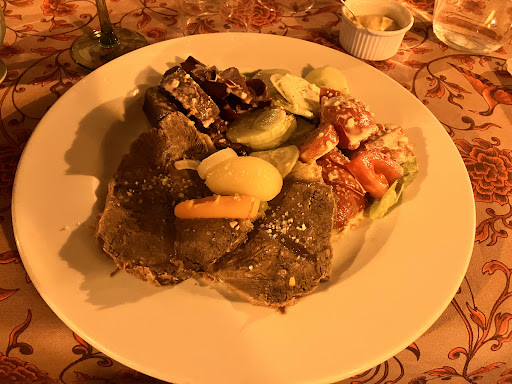 Read moreJâavais notĂ© 2 Ă©toiles cet Ă©tablissement il y a quelques annĂ©es. Pensant que les choses sâĂ©taient amĂ©liorĂ©es, jây suis allĂ© ce soir, quelle dĂ©ception⊠La terrasse est sympa, le cadre intĂ©rieur trĂšs Winstub. Par contre le service est dĂ©plorable. Impossible de rĂ©server une table et, lorsque enfin on peut sâasseoir, câest pour sâentendre dire quâil faut se dĂ©pĂȘcher de commander car la cuisine va fermer ! Ăa peut se comprendre, mais le ton autoritaire nâĂ©tait pas nĂ©cessaire. Aller au restaurant, ce nâest pas simplement se nourrir, mais câest Ă©galement un service ; un service que lâon paie. Dans cet Ă©tablissement, il est totalement absent. Non seulement on ne nous a pas proposĂ© dâapĂ©ritif, mais il fallait directement choisir un plat de la gastronomie locale alsacienne, Ă savoir : une quiche lorraine, des escalopes viennoises, des escalopes, Ă la crĂšme, de la dorade⊠Bref, plus de la moitiĂ© de la carte Ă©tait issue de lâespace extra-rĂ©gional. Que souhaitons-nous boire ? Bonne question, il nây a pas de carte de vins, donc pas non plus de prix⊠La carte des vins a disparu depuis le Covid nous fait-on comprendre. Arrivent alors les assiettes : une escalope viennoise, ridiculement petite avec quelques pommes de terre sautĂ©es en guise dâaccompagnement ; pas de lĂ©gumes, pas mĂȘme une feuille de salade, le nĂ©ant autour de cette semelle ridiculement petite dans une assiette trop grande. Pas mieux pour le bĆuf gros sel, deux tranches assez fines ; quant aux cruditĂ©s, nous sommes loin de ce que proposent les fermes auberge. Faute de lĂ©gumes frais et rĂąpĂ©s, quelques grossiers morceau de tomates, quelques rondelles de concombre et 2 ou 3 morceaux de betteraves faisaient office dâaccompagnement. C'est rare que je ne finisse pas mon assiette, mais ce fut le cas ce soir lĂ ; dâailleurs, comme la derniĂšre fois oĂč jâai frĂ©quentĂ© les lieux. Quant au dessert, pas de carte non plus, mais simplement un choix de tartes aux fruits ou de Panna Cotta, typiquement alsacienne. La cuisine est Ă lâimage du service : fade et incompĂ©tent, manquant de sourire et de convivialitĂ©, bref, un endroit que je vous dĂ©conseille et oĂč je ne mettrai...