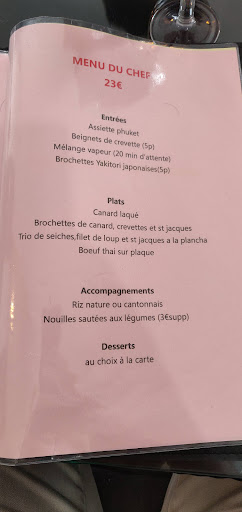 Un restaurant avec une formule midi peu coûteuse, service rapide et efficace. Porc au caramel délicieux (je recommande) tout comme l'entrée composé. En dessert le café liégeois saké pour finir ^^ Dommage pour le vin rouge : le demi était au frais et il y avait même un glaçon dedans ?! Alors certe il est pas cher mais de très mauvaise qualité ... Pourtant il existe des cubi de rouge de qualité pour pas cher et qui n'ont pas besoin de rester au frigo pour qu'il soit bon. A améliorer ... Les toilettes sont a rénover aussi car donne pas très envie...