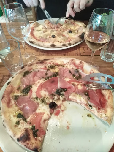 Read moreA savoir : chien interdit. Pas de repas enfants. Pas de salade pour les convives qui ne mangent pas de pizzas aussi bonnes soient elles,...Peut-être ?. (Je pense qu'avec les ingrédients servis dans la conception des pizzas il est très facile de concevoir une salade afin de satisfaire un client) Pour l'apéritif, peu de choix. (Un seul whisky "basique", pas de sirop d'orgeat à mettre dans un Ricard) Pour les glaces des enfants, choisissez bien le parfum. Tous ceux indiqués sur la carte ne sont pas disponibles. Les baies vitrées du lieu ouvrent une vue sur un mur d'immeuble, agrémenté de climatiseur, sans intérêt... Les pizzas sont certainement très bonnes, je ne peux pas en juger mais pour moi je suis ressortie de ce restaurant très contrariée. Je n'ai pas quitté la salle car j'étais en compagnie de mes enfants et petits enfants. Je n'ai rien mangé sauf une crème brûlée, correcte...