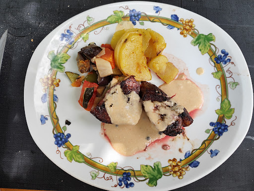Worst restaurant we've been to in our 20 years of living France. We were a group of 6 and on arrival, the unwelcoming, unsmiling server just pointed to our table and carried on setting tables up - it was 40 minutes before she approached us for any drinks orders. 2 of us ordered a goats cheese salad: the salad leaves were old and brown and the goats cheese had a horrid texture and absolutely no flavour. The dressing on the 'cheese' was a sickly, bitter Balsamic (I think) - not at all nice, so both of us left our plates pretty much untouched. The server didn't ask why when collecting our plates so I told her - she just shrugged her shoulders and walked off. 2 hours in and she still hadn't cleared the remaining starter plates. 3 of us had the main: Brochettes of scallops/gambas/fish (I forget which) which sounded lovely. On the contrary it was awful. Tiny portions coated in a off-tasting sauce which tasted like a cheap shop-bought fish bisque, one of my companions actually gagged when tasting it. None of us ate any of it - it really was bad. Others on the table complained that the chips were soggy and undercooked, and some chose not to eat their meals either. The other starters (foie gras and mussels in a curried sauce) were ok - nothing special, but totally acceptable. Overall the food presentation was poor, service appalling, and cooking abysmal. The place was busy (Saturday night) and I'm sure there were a few regulars - perhaps other dishes were satisfactory. On leaving, the staff/manager showed no interest in our compaints and offered no apology or excuse. I should also point out (just after Covid19 lockdown) that none of the staff had any masks or face visors on (inside or out), and used paper and laminated menues were on every table - staff did not socially distance themselves and albeit outside, the tables were still too close to each other. It's such a shame we had a bad experience - I had hoped this would be a new regular eating place as the setting by the river and canal is beautiful. None of us will be...