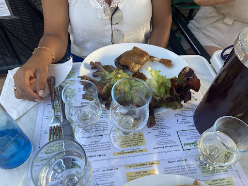 Read moreJe met 1 étoile pour la nourriture et pour le service car je ne peux pas mettre 0. Le cadre est très agréable, et c'est bien la seule chose qui sauve ce restaurant. 3/4 personnes du personnel tiraient la gueule ou n'étaient pas professionnels, à part la jeune fille de 18 ans qui était souriante et avenante. Nous avons demandé une bouteille de vin blanc qui n'est pas arrivée assez fraiche. Elle se trouvait dans un seau avec de l'eau "presque" froide et sans glaçons, en plein mois d'aout; à priori la machine à glaçons ne fonctionnait pas et personne n'aurait pu nous prévenir avant que l'on commande le vin; le personnel a prit l'air surpris quand nous avons demandé des glaçons et avons dit que le vin était trop chaud, comme s'il s'agissait d'une demande impossible. Ensuite la serveuse a osé nous contredire et nous dire que le vin était à 12 degrés, je lui ai alors dit que je travaillais dans le monde du vin et ce n'tait pas le cas. Si vous avez des problèmes avec votre machine à glaçons, achetez des glaçons ou faites s'en! Ensuite, les plats sont trop cher pour ce que c'est, pas assaisonnés, et la cerise sur le gâteau: une assiette de confit de canard où vous avez une pièce plus petite que ma paume de main et de la salade, oui....15 feuilles de salade bien posés qui se battent en duel, et rien d'autre! Ni un assaisonnement! Nous avons osé demander un peu d'huile d'olive et du sel, ou quelque chose pour donner du goût à la salade et les serveuses ont eu l'air surprises. Service médiocre et restaurant à éviter si vous...
