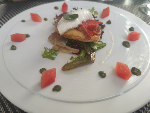 Décevant, ce qu'on dirait en Espagne un arnaque. Le restaurant dispose d'une plaque recommandée au Michelin, d'une belle entrée et d'un environnement agréable. Mais tout ce qui brille n’est pas de l’or. Nous avons commencé avec une cuillère à café de crème fraîchement sortie du réfrigérateur devenue gélatineuse sans aucune saveur.