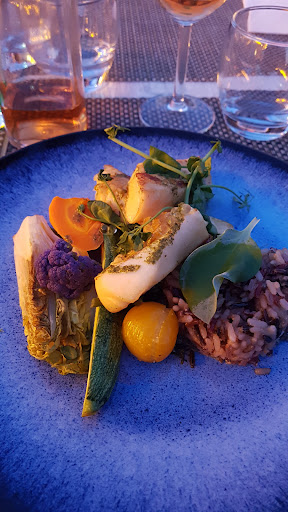 I really wanted to love this place.... The setting is great. Lovely view and if only I hadn't been given the one table outside that really got hit by the sun then things might have been better. But then again. Service was to put it mildly brusque. Absolutely no smiles no welcome or how are you. Just.. your table is there. No explanation of today's specials. OK fine I had goats cheese starter. Tasty and well presented. The cod as main was dry as dry as the sand outside. Really dry and seemed to have been left under a heater. The vegetables were also withered to near death. Finally the cafe gourmand came without a coffee and everything sprinkled in icing sugar. A warning sign. No variance and really nothing to write home about. Dry again seemed to be the theme. All this while trying to dodge the burning sun rays that no one else seemed to have. Oh and hysterical children. Literally screaming place down. I left quickly. What a shame I really...