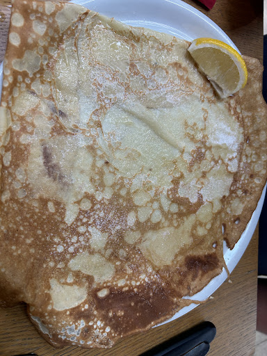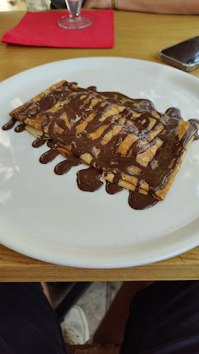 We ordered egg and bacon crepes and chicken salad, followed by lemon and ice cream crepes. The staff were friendly and the food was very good. There was not a long wait. If you come in a large group, it is recommended to make a reservation. The average meal cost was 20 € per person. The restrooms and surrounding cleanliness were very good. The atmosphere outside the restaurant was refreshing, you could see the crepes being made and the ingredients being prepared...