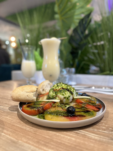 An excellent meal. Three of us dined. First courses: tomato and burrata (very good, slightly let down by mediocre tomatoes, but the dressing hid that); foie gras (perfectly good); salade de croustillants de chèvre chaud (had my mother rhapsodising). Second courses: squid with vegetables (my mother: "Nothing could have been improved in that dish"), souris d'agneau (my father ate all of it, his only complaint was the knife wasn't sharp enough); ravioles gratinées aux cèpes (entirely too rich and creamy for a day when it was 36° outside; I ate the whole thing and wiped my plate clean). Dessert offerings looked somewhat uninspired, so we didn't. Notes: 1. service was mostly clearly untrained young men who were trying very hard, but could do with a few pointers. They were adorable, but it is, for example, not customary to clear plates whilst one person is still eating. But they tried, and were very attentive. 2. It is halal and alcohol-free, which initially appalled my father- by the end of the meal he was very happily on his second virgin mojito. (I had a White Lychee mocktail, it was delicious.) I would absolutely come again- my only caveat is that the only vegetarian option in the main courses was not seasonally appropriate- and more than one option is always appreciated! There was one vegetarian "main salad", however, although after a salad first course, I didn't want another salad...