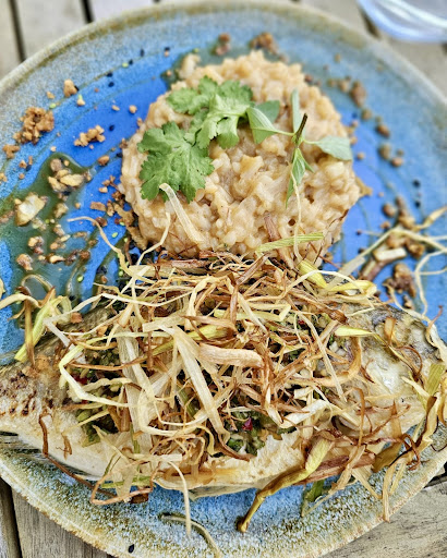 Read moreJe pourrais mettre une sixième étoile!!! De passage dans la région afin de faire étape pour nous rendre en Espagne nous avons découvert ce magnifique petit restaurant éphémère par hasard. Quelle belle surprise !!!! Le cadre est tout simplement magnifique. L’accueil est chaleureux et la petite équipe souriante toujours disponible pour trouver une solution. Que dire des plats ….tout simplement succulents, soigneusement pensés et préparés avec des produits frais. Les assiettes sont généreuses, le goût, la texture, la présentation… tout y est, c’est un sans faute. Le tataki de thon rouge est exquis, la fraîcheur et les saveurs sucrées salées du tartare de gambas sont incroyables… et que dire du burger et des nems … délicieux !!! Alors…allez y, courez y, l’expérience sera excellente et chargée d’émotions. Merci l’art ô Matt et continuez ainsi….. le...