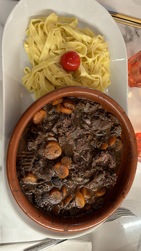 Read moreGood initial welcome. Starters came quickly as did our child’s meal. However the rest of the food was very slow to come out and all the staff disappeared for about 30 minutes. Starters and main courses poor to adequate sweets good. The house kebab was a cheap reconstituted unidentifiable meat, the Gardiane adequate beef in wallpaper paste and who puts bell peppers in Parmesan sauce? Childs meal a good quality steak hache and the chips were good. Service ok when staff actual bothered to...