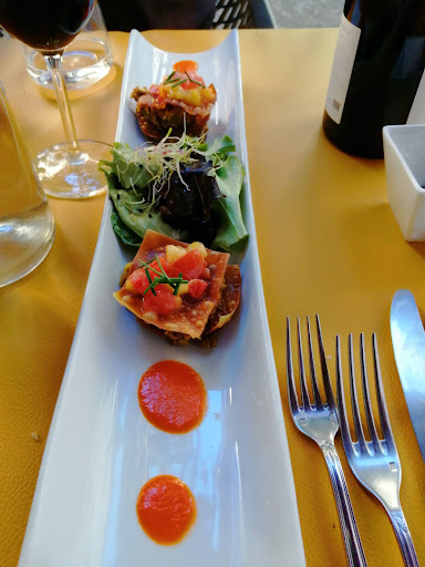 Read moreAlors là, les mots me manquent, et suis presque incapable de vous décrire ce beau voyage gustatif que nous avons fait, au travers les différents mets ! Whaoooo ! De prima-bord, un lieu simple, aux airs presque touristiques..., puis une fois assis et servis, aucune, je dis bien aucune fausse note, de la prise de commande au au-revoir !! Vos papilles s'enchantent depuis le début avec des notes sublimes en arrière palais puis elles font un feu d'artifice dans votre gorge avec la suite. Ici, tout est senteur, parfum, goûts extravagants et ivresse des sens. Le tout dans une ambiance humble, amicale et joviale, loin des établissements pompeux, moins bons et très chers ! Notre serveuse a été tout simplement et humainement formidable ! Merci ! C'est plutôt rare de trouver un personnel si passionné et allègre ! Je ne vous en dit pas plus : ALLEZ Y ! Les yeux fermés ! Un dernier mot : laisser vous guider par leurs conseils, vous en serez plus qu'enchantés ! Ciao ;-) Remarque : ici, on vous change les couverts entre l'entrée et le plat ! Lol... Chapeau bas et merci à...