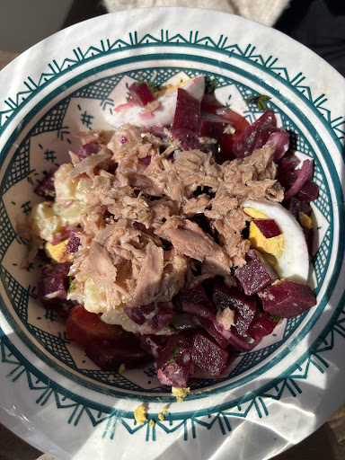 Concernant mon plat, j’ai choisi la pastilla au poulet, proposée en plat du jour à 15 €. Quelle surprise en la voyant arriver : elle était ridiculement petite, comme le montre ma photo. À ce prix-là, je m’attendais à quelque chose de bien plus généreux.
