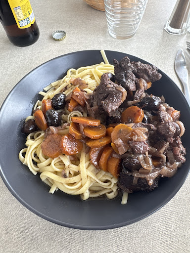 La Kaz Gourmande, c’est la définition du bonheur dans une assiette. J’ai goûté leur gardianne de taureau : une viande tellement tendre qu’on se demande si le taureau a lui-même mijoté dans le vin rouge avant d’arriver en cuisine. Les tagliatelles absorbent la sauce comme des éponges gastronomiques, et chaque bouchée est un câlin pour l’estomac.