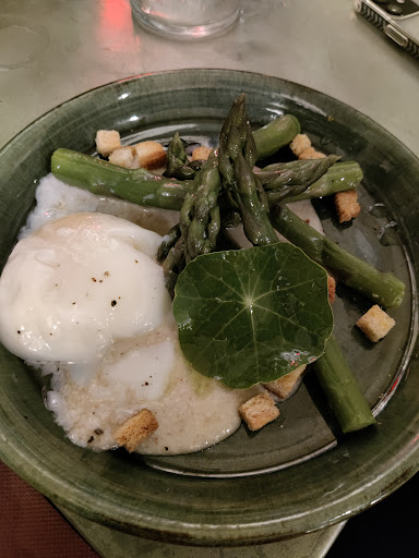Read moreSaturday night at the Marmite blooming marvellous boudin crispy on the outside melting inside , apple , mashed potato. scallops in the shell with a sliver of crispy pork and coriander pesto were juicy and generous asparagus , perfect egg, parmesan cream and hazelnuts homemade frites top quality melting and crispy tripe with a touch of vinegar all without exception spot on. plus a bottle of ludovic angelvin's Cruelle and Thierry Forestier's Altissima all that for under 140€ . lively service in the...