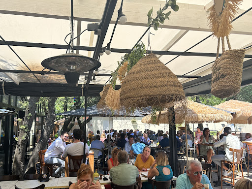 Une cuisine faite à la braise , très belle idée mais allez jusqu'au bout de "votre impact écologique" mais n'allumez pas vos chauffages rayonnants infrarouge un jour de grand soleil , avec une température correcte juste pour des personnes qui sont en terrasse couverte mais en t-shirts 🤬 qu'ils se couvrent.