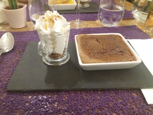 Tous les plats sont faits maison, la patronne est de bon conseil pour les accords mets/vin. Celui qu'elle a conseillé à mon conjoint venait d'un petit producteur du coin et était excellent. Nous avons mangé un assortiment de tapas, puis une délicieuse côte de bœuf parfaitement cuite avec ses accompagnements tout aussi bons. 🤤 Les autres avaient pris du poisson et la pièce du boucher qui étaient également succulents. Notre seul regret c'est que les desserts étaient terriblement tentants mais que nous n'avions plus de place pour en...