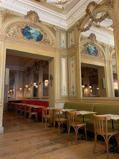 Read moreReally nice old cafe with an impressive ceiling, bar and seating arrangement. It is usually crowded, especially during the winter and in the afternoons. The food is not that great. I can only recommend the burger which I enjoyed in one of my visits. Service is really relaxed. Maybe more than what you would expect in a historic cafe. Also, prefer to sit outside or if you go inside choose the tables in the bar area if they are available. The tables in the second room are not that great, the set-up is darker and you get the noise from the kitchen and the people visiting the toilets all the time. I prefer going there for a quick coffee or a hot chocolate with the kids, rather than for lunch or dinner. For that i would give it 5 stars, but the lunch/dinner experience is...